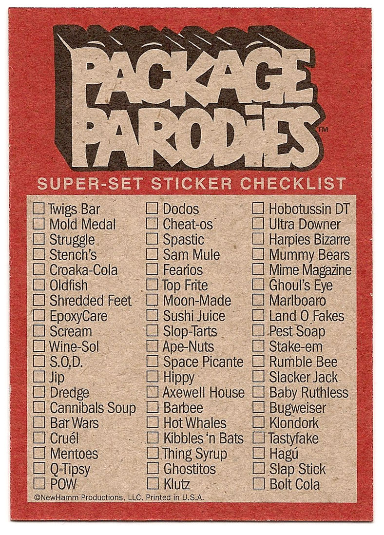 ‡ Three titles were pulled. All 57 remaining titles are from Package Parodies Stickers Series 1 & 2.